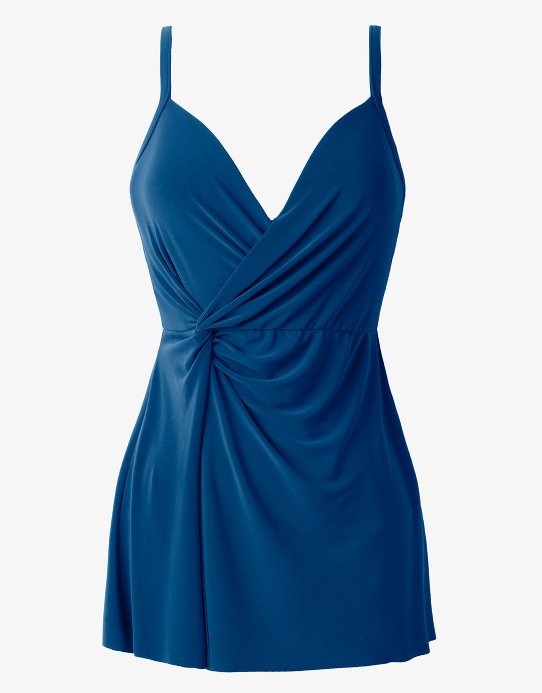The Twisted Sisters Adora swimdress from Miraclesuit is a very feminine, full control swimsuit with the addition of a light skirt with side slit and plenty of draping across the front. With soft underwired cups and narrow adjustable straps, this style offers a little more coverage and is super flattering.