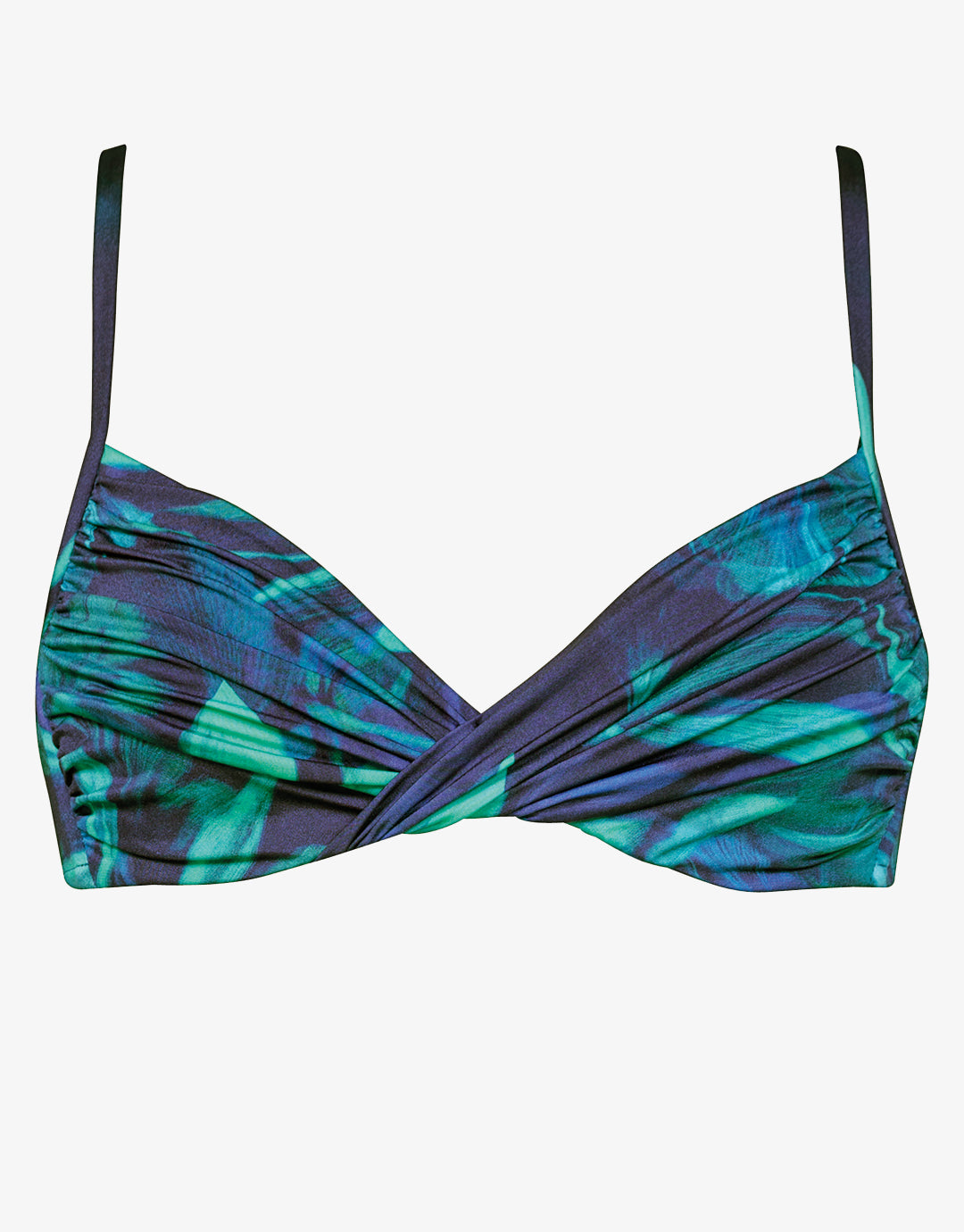 The Botanique Underwired bikini top from Maryan Mehlhorn in this stunning tropical aquatic print is an underwired style with a flattering twist front with removable and adjustable straps.