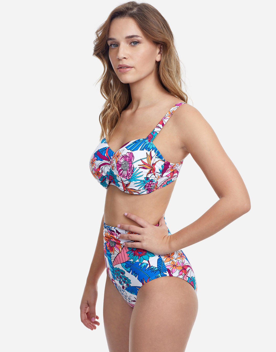 The Bohemian Gypsy High Waist bikini pant from Profile by Gottex is a lovely high-waisted, ruched front style with full coverage.