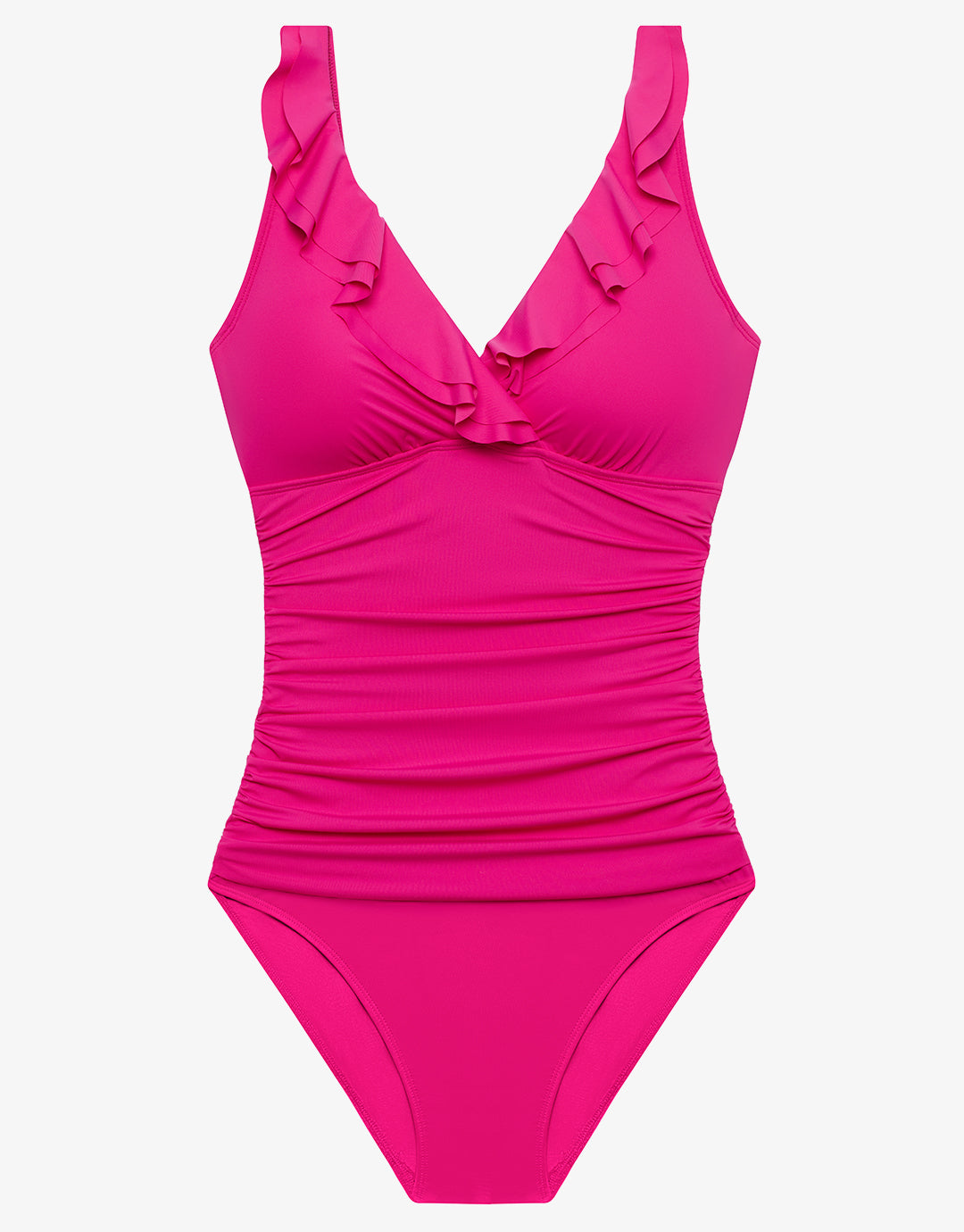 The Beach Club Solids Ruffle Surplice Underwired swimsuit from Lauren Ralph Lauren is a beautifully feminine style with a flattering and pretty double ruffle border neckline. With underwired cups, removable padding and a slimming fit.