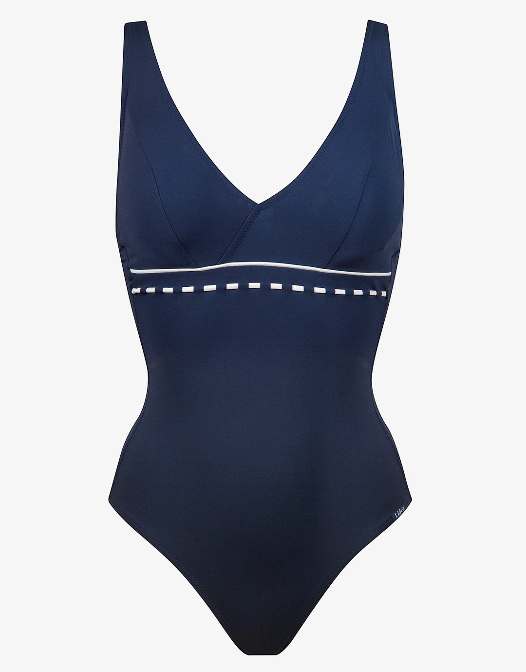 The Marine Mindset Underwired V Neck Swimsuit from Lidea has a deep, flattering v-shaped neckline and is underwired for extra support. Adjustable wide straps offer exceptional functionality while white piping and pick stitching under the bust blends retro nautical with a sporty aesthetic.