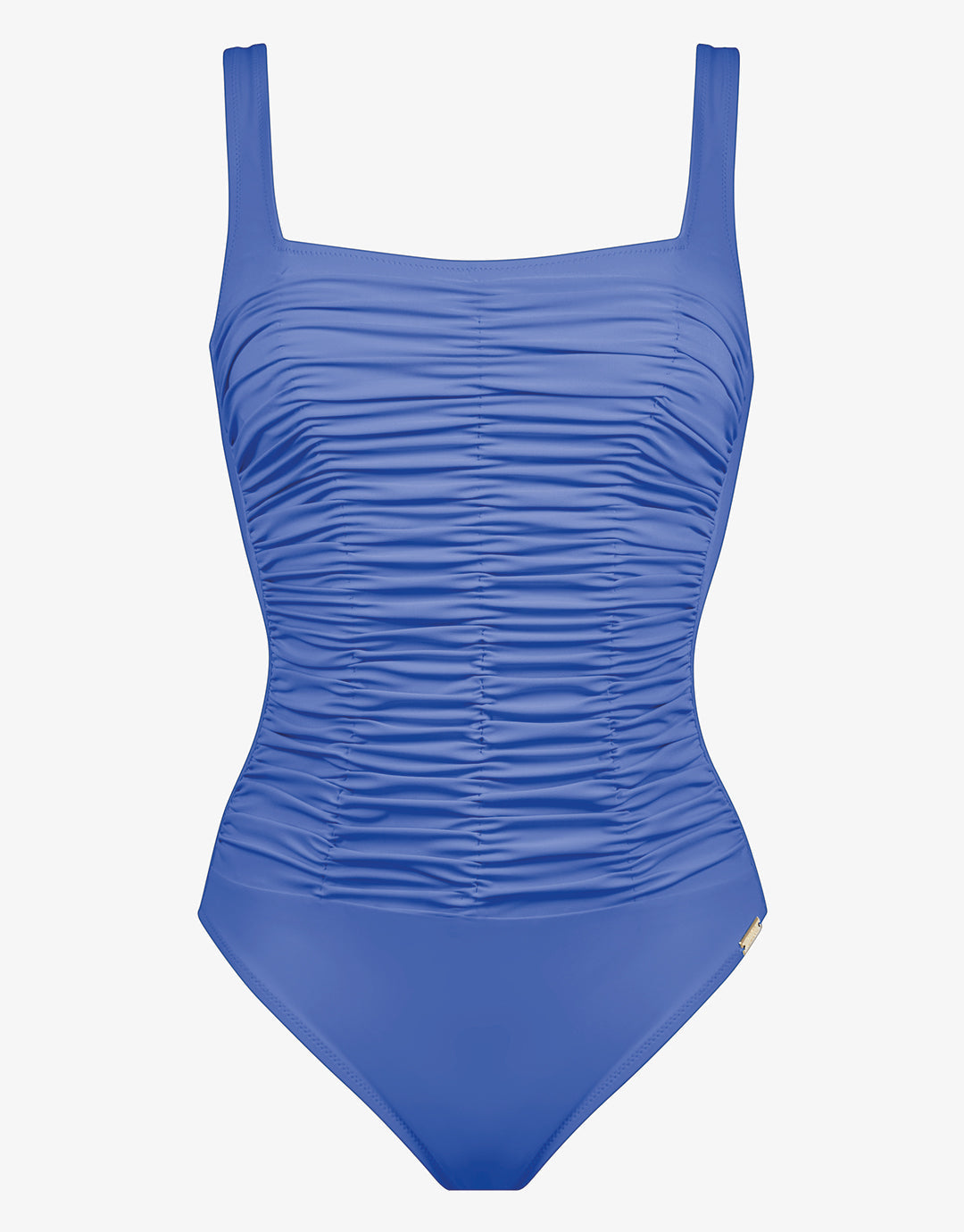 The Elements Square Neck swimsuit from Maryan Mehlhorn in a lovely Air blue colour is an elegant, square neck style with moulded foam cups, wide straps and flattering gathering over the front.