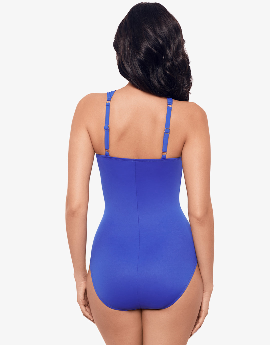 The Rock Solid Europa swimsuit from Miraclesuit is a fashion-forward style with an asymmetrical neckline, underwire and offset wide halter look straps which attach at the back in classic style with adjusters for optimum fit.
