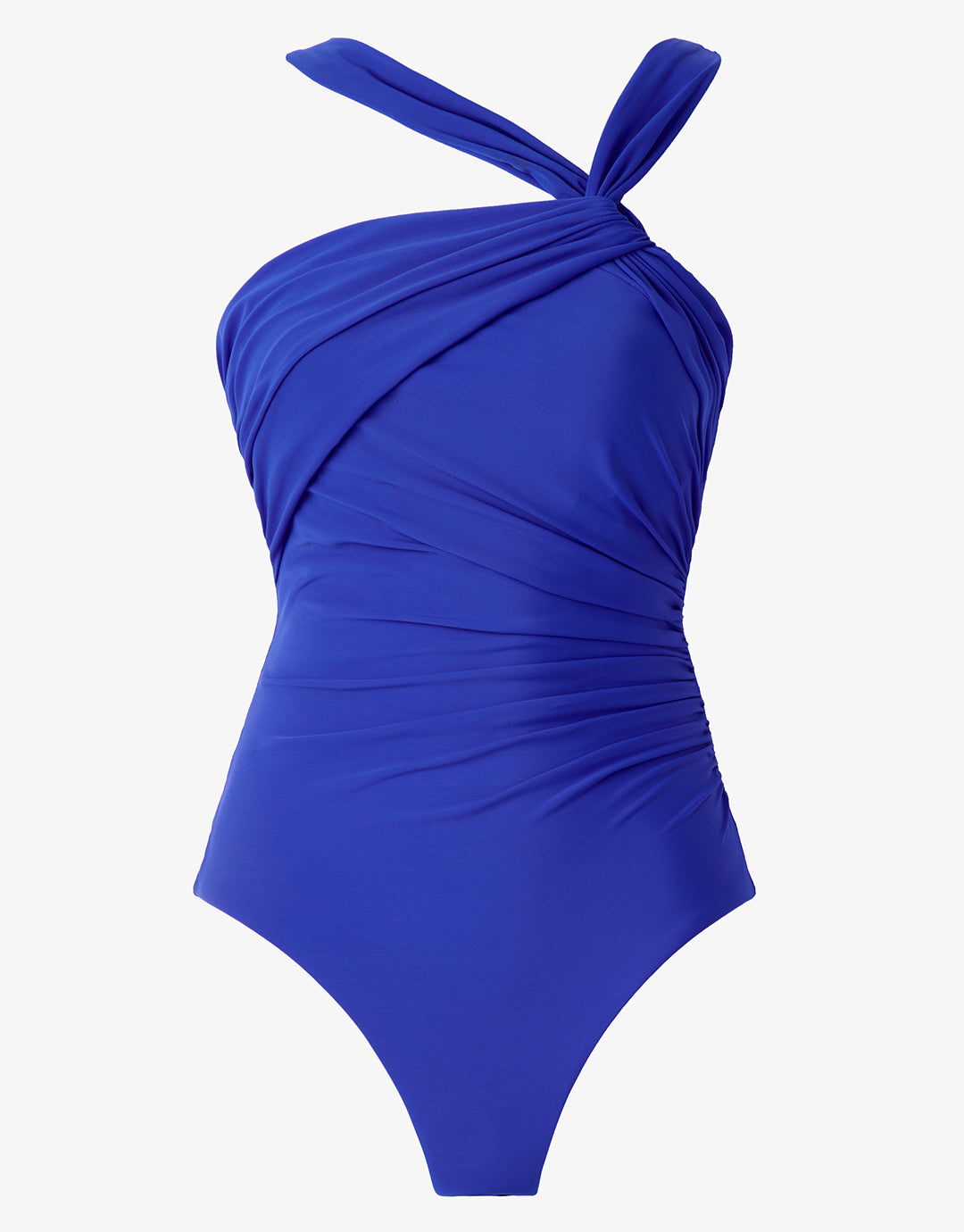 • Asymmetrical halter styling