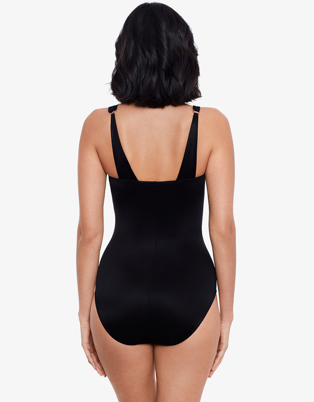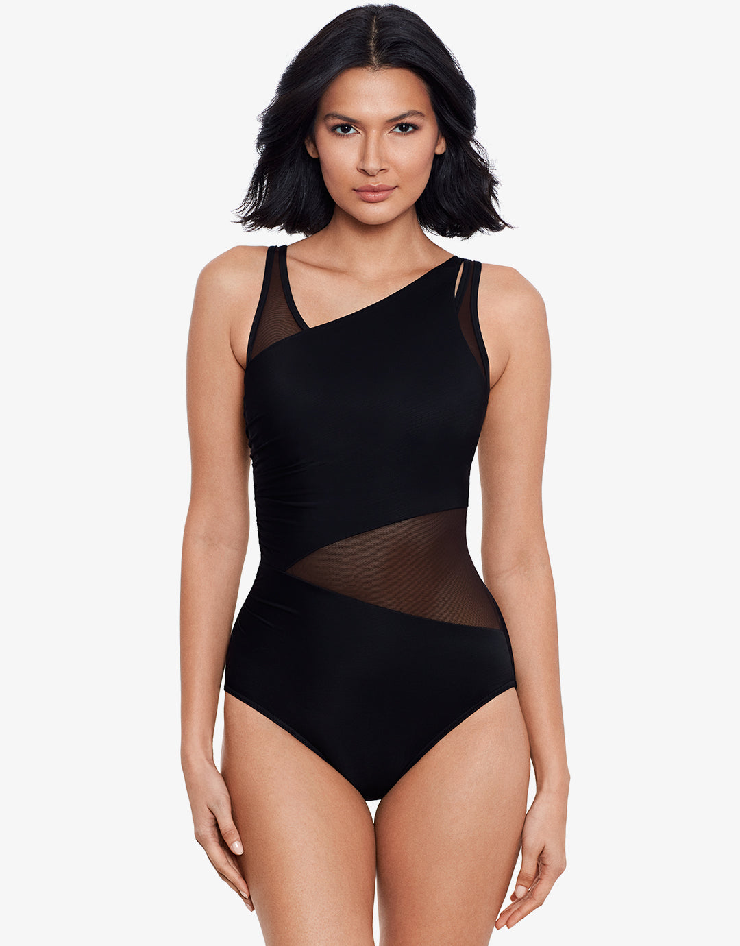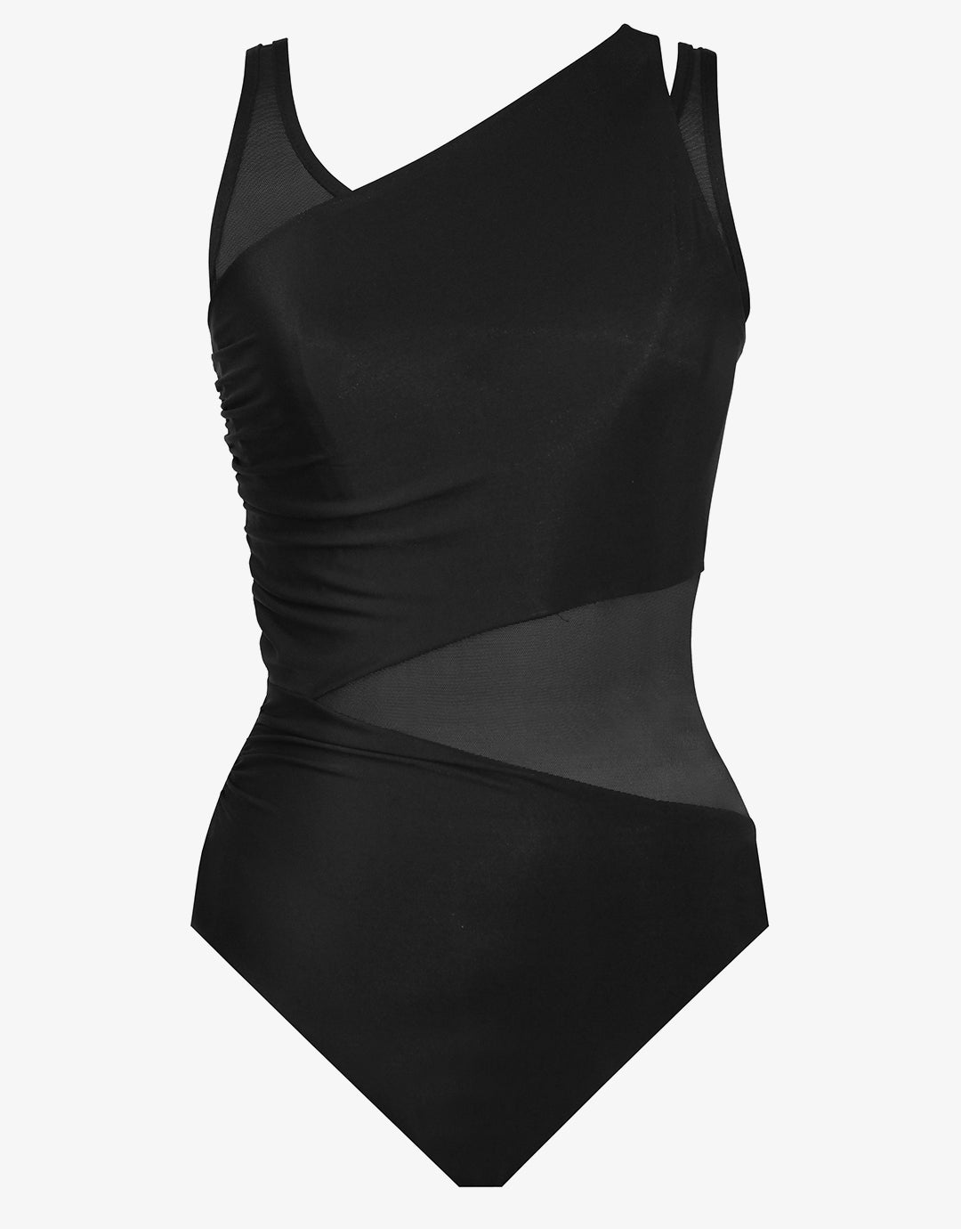 The Network Azura swimsuit from Miraclesuit is a stunning asymmetrical layered-look style which is similar to the Jena styling but with the addition of underwire, mesh straps and shelf bra and a wide mesh panel to one side.