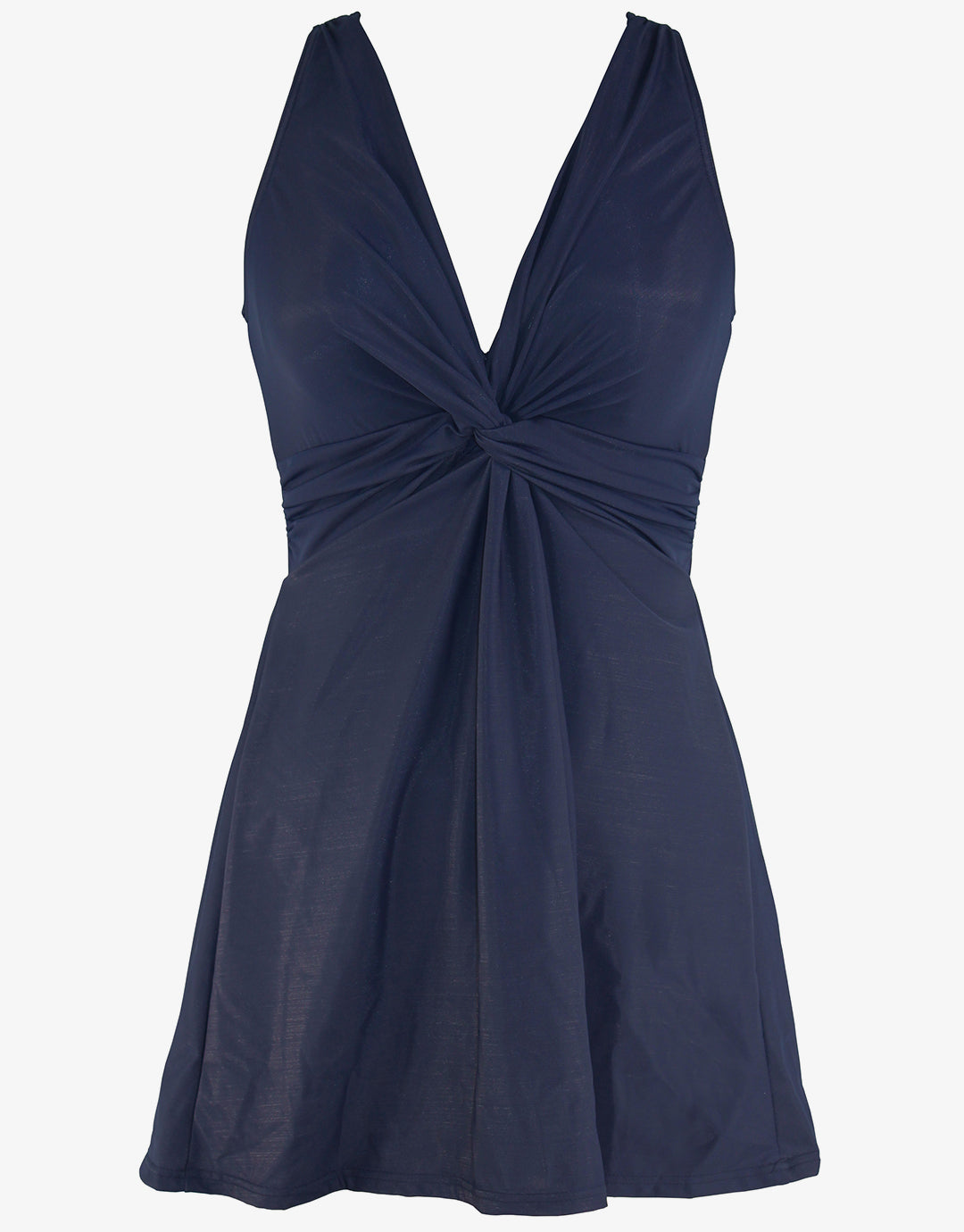 The Must Haves Marais swim dress from Miraclesuit is a super style when you want a little more coverage. This Must Haves version in Midnight blue is an easy-fit style with a plunge front, a twist detail at the bust and a short gathered skirt which finishes just below the knicker line.