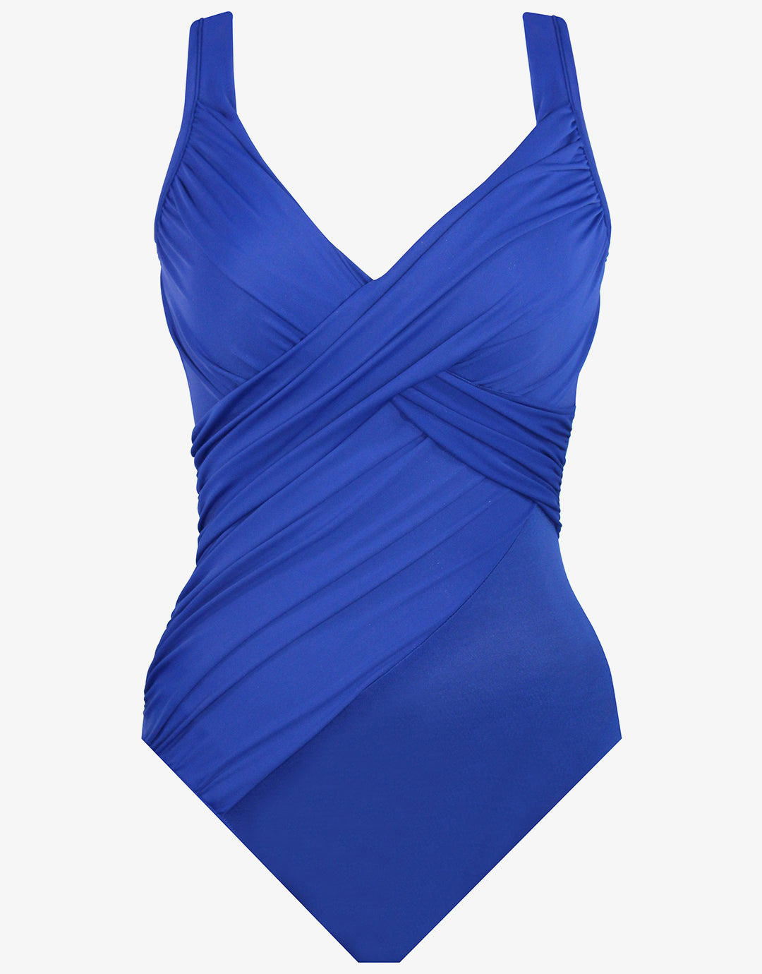 The Rock Solid Revele swimsuit in Azul blue from Miraclesuit is a gorgeous bright blue swimsuit with a V neck and wrap detail over the bust. Inside it has moulded foam cups and underwire and the straps are padded for extra comfort.