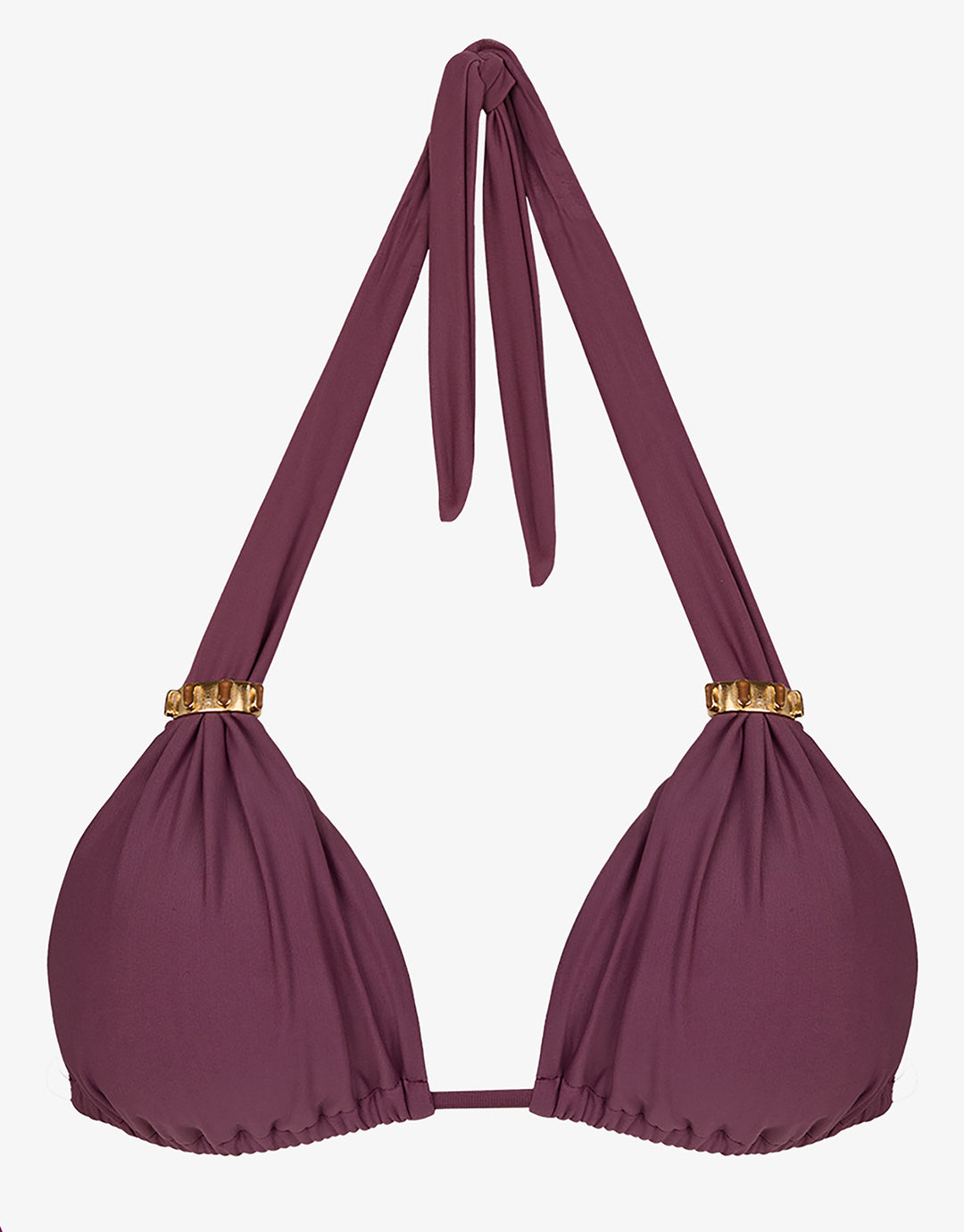 The Solid Bia Tube bikini top from ViX in Soulmate, a stunning dusky grape colour, is a classic but contemporary style in a flattering, adjustable cut accented with gold-plated rings that double as sliding tubes which offer incredible styling versatility and a never-dated look.