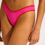 The Beach Bound Scoop High Cut Rio bikini pant from Seafolly in vivid hot pink with a contrasting flame red border is perfect for summer. This style is a low rise cut with a high legline and minimal rear coverage.