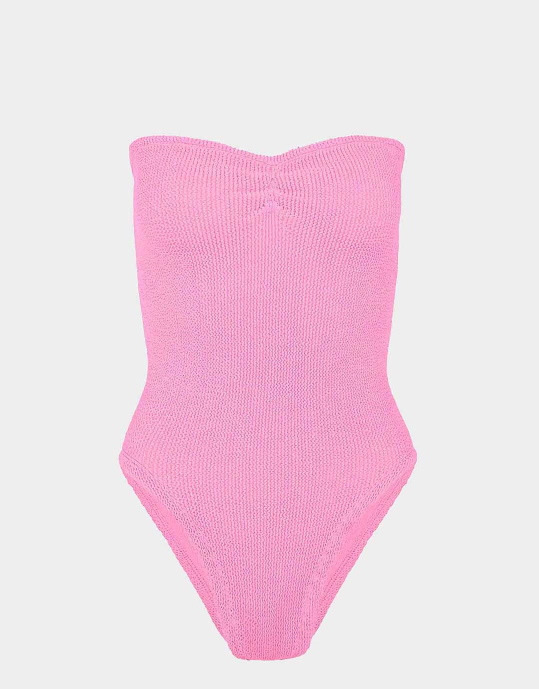 The Brooke swimsuit from Hunza G in this glorious bubblegum pink, is a bandeau style one piece with a ruched, sweetheart neckline and a figure sculpting silhouette. Constructed from their innovative Crinkle fabric which is designed to flex and sculpt to your body meaning that one size will fit sizes 6 to 16.