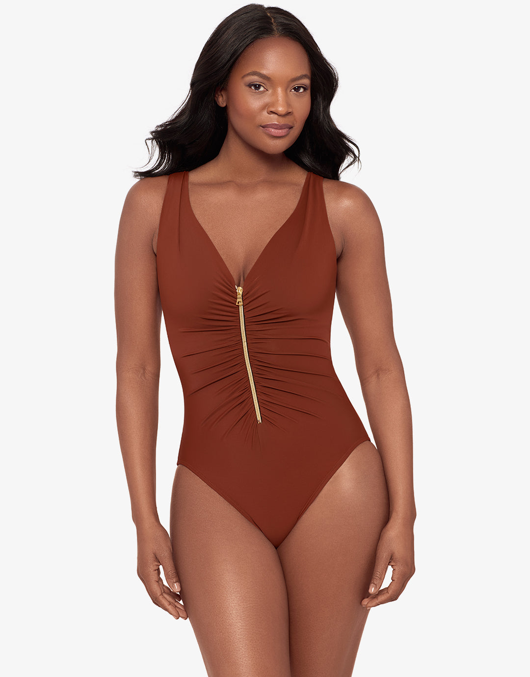 Miraclesuit Razzle Dazzle Zipt Swimsuit - Copper - Simply Beach UK